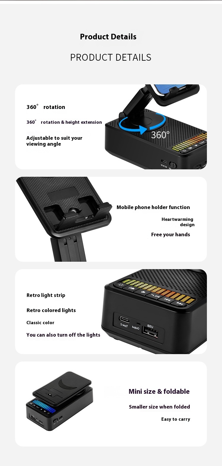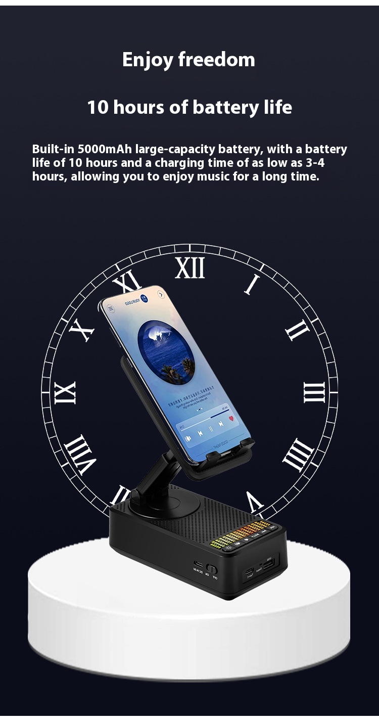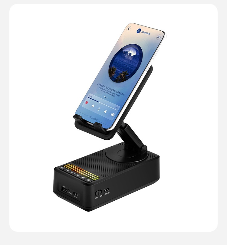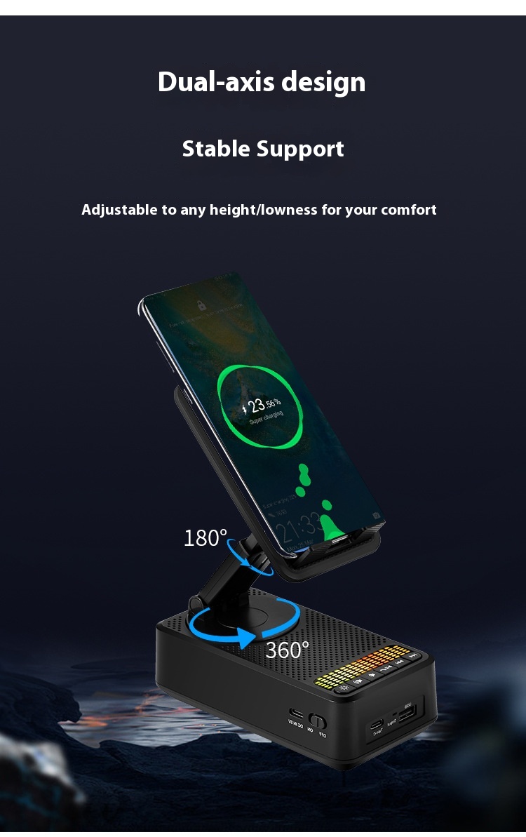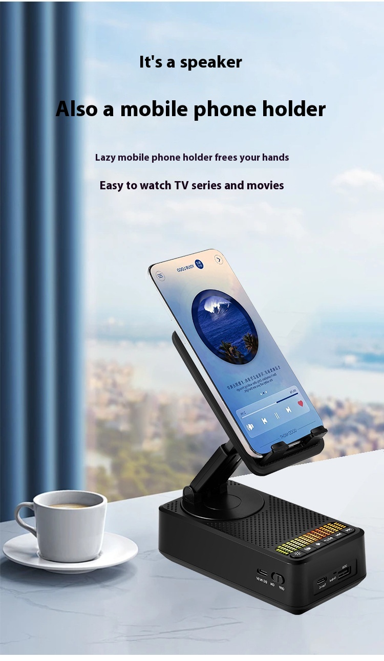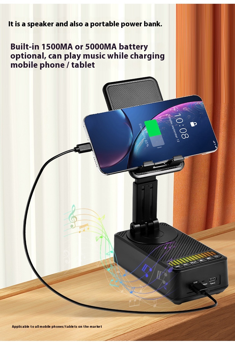 Experience ultimate convenience with this multifunctional mobile phone bracket featuring a Bluetooth speaker and built-in power bank. Designed for hands-free viewing and high-quality sound, this foldable, rotating phone stand is perfect for home, office, travel, or outdoor use.